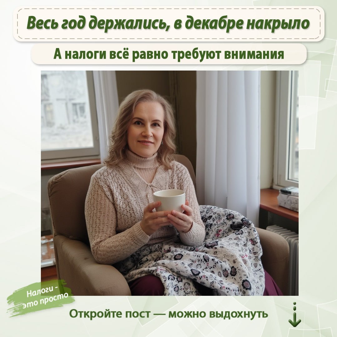 😵💫 Успеть всё в декабре, что не сделала за весь год! Это про меня. 🤦♀️ У кого также? И ты вроде живой человек, но внутри уже только одно: «Декабрь, отпусти. Хочу плед, чай и чтобы никто ничего не просил». 🙏 💁♀️ В этот момент я прекрасно понимаю своих клиентов. И так сотни дел, а еще эти уведомления в личном кабинете, письма от ФНС, сроки, проценты, вычеты… 👉 Парадокс в том, что на всё остальное сил может не хватать, а вот в налогах у меня как раз есть опора. Для кого-то личный кабинет — кошмар и хаос, а для меня — рабочая территория, где я уверенно себя чувствую. Что хочется сделать обычному живому человеку, когда он выжат и каждое действие кажется ещё одной горой? 😪 Правильно: 🔵 закрыть вкладку с личным кабинетом, 🔵 сказать себе «разберусь потом», 🔵 продолжать надеяться, что «как-нибудь само». У налогов есть неприятная особенность: они не исчезают, если сделать вид, что их нет. Поэтому я за честный подход: если нет сил разбираться самой/самому, не обязательно тащить