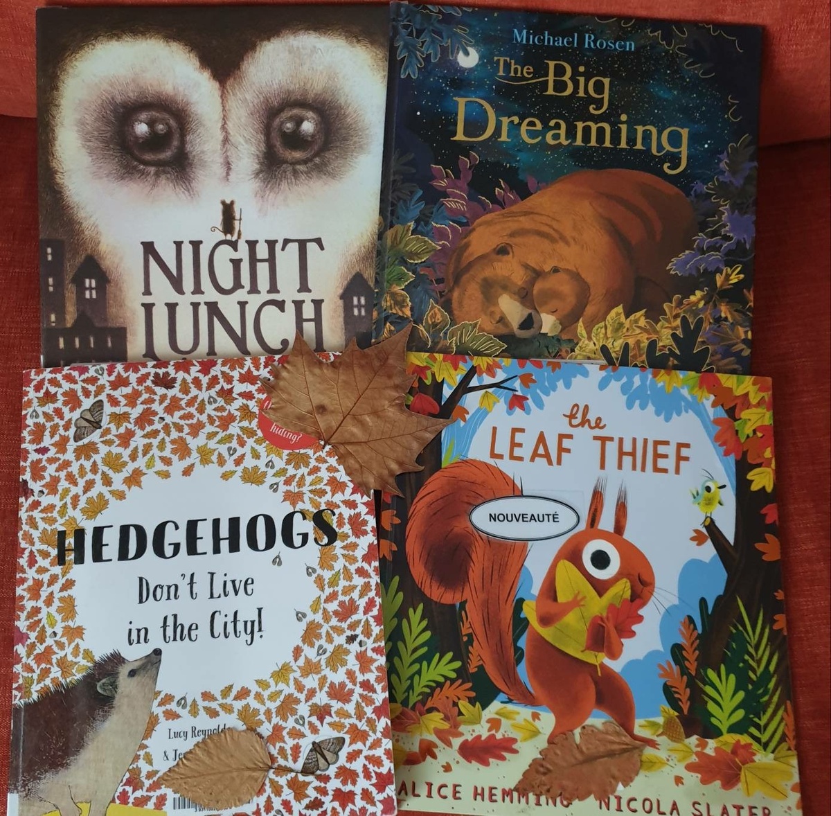 Уже декабрь... Опаздываю показать осенние книжечки) Они для малышей, но я такое люблю мимишное) И дочка иногда интерес проявляет. И повод английский вспомнить. The leaf thief История о бельчонке, который вдруг обнаружил, что красивые листья с его дерева исчезают. Кто же вор?! Умная птичка-соседка даёт бельчонку сеанс психотерапии... ... и урок естествознания. А-а-а, кто украл траву?! В конце книги есть справка для малышей: что происходит осенью. The big dreaming Медвежонок готовится к спячке. Но переживает - вдруг снов не хватит на всю зиму. Кто готов с ним поделиться? Получив напутствия друзей, мишутка отправляется баиньки в берлогу. Night lunch Это странная история. Я думала - по названию и картинке на обложке - что сова захочет полакомиться мышонком) Здесь в тексте интересны звукоподражательные слова. Оказалось, сова всех голодных вкусно и красиво кормит. И дворнику-мышонку тоже закатила пир горой. Hedgehogs don't live in the city Это книга уже для продвинутого читателя