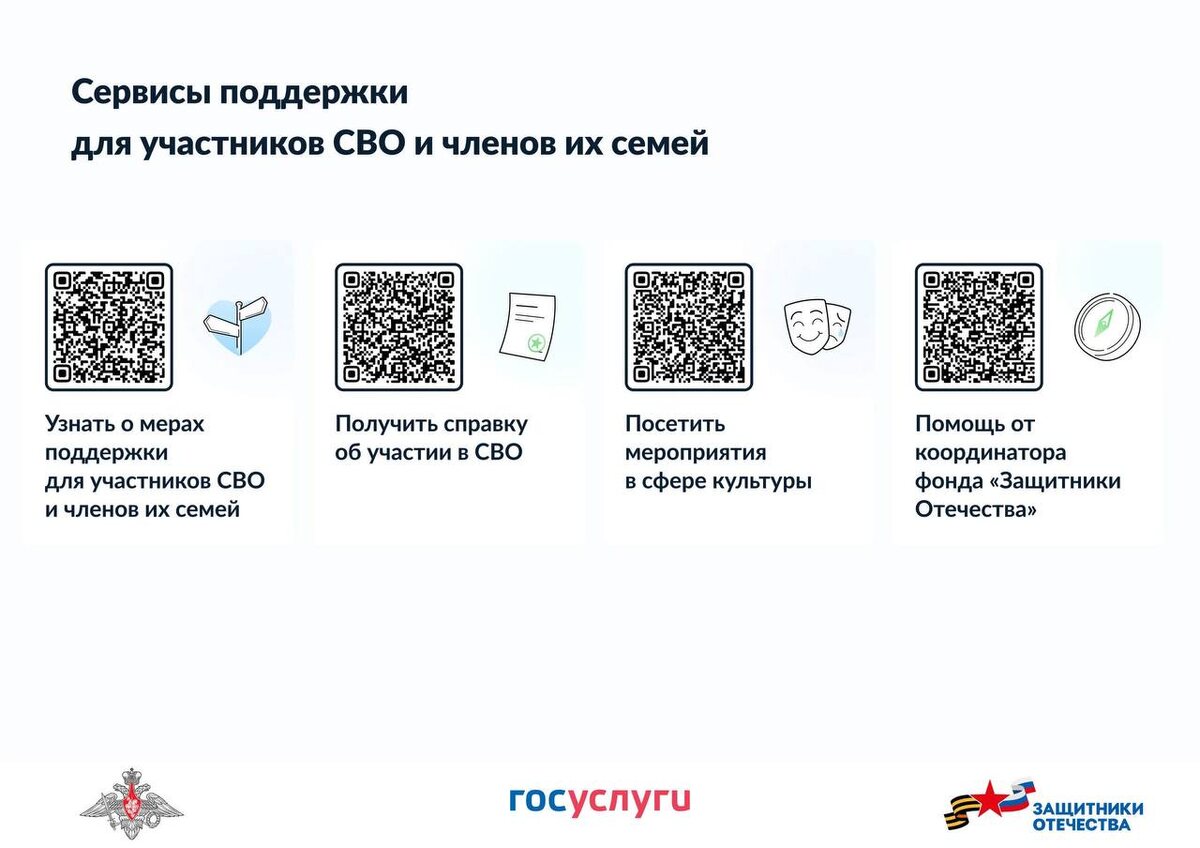 Сервисы поддержки для участников СВО и членов их семей ❗️Мы рады сообщить вам о возможностях, которые доступны через портал государственных услуг. Это ваш надежный помощник, который предоставляет широкий спектр сервисов, направленных на поддержку и помощь. ✅Узнать о мерах поддержки ✅Получить справку об участии в СВО ✅Посетить культурные мероприятия ✅Помощь от фонда «Защитники Отечества»