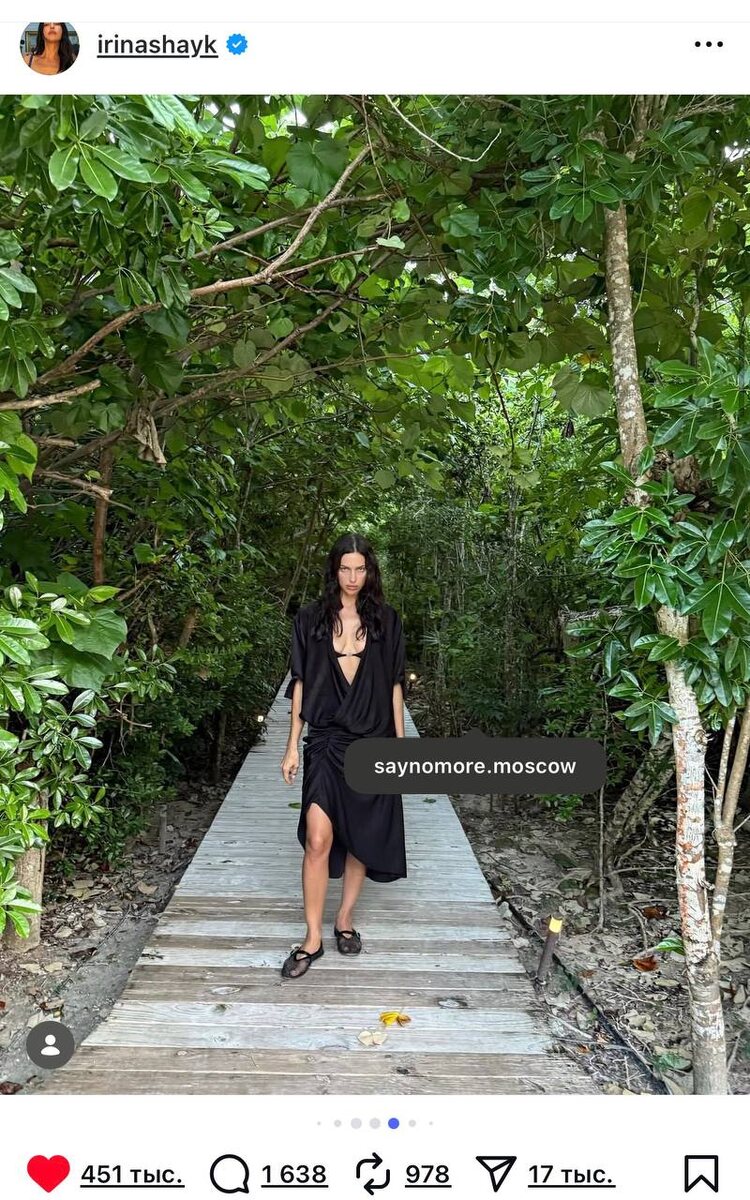 Класс, Ирина Шейк в целых двух луках SAY NO MORE на островах Тёркс и Кайкос. Смотрится – отпад, поздравляем бренд с такой героиней! *скрин из экстремисткой социальной сети