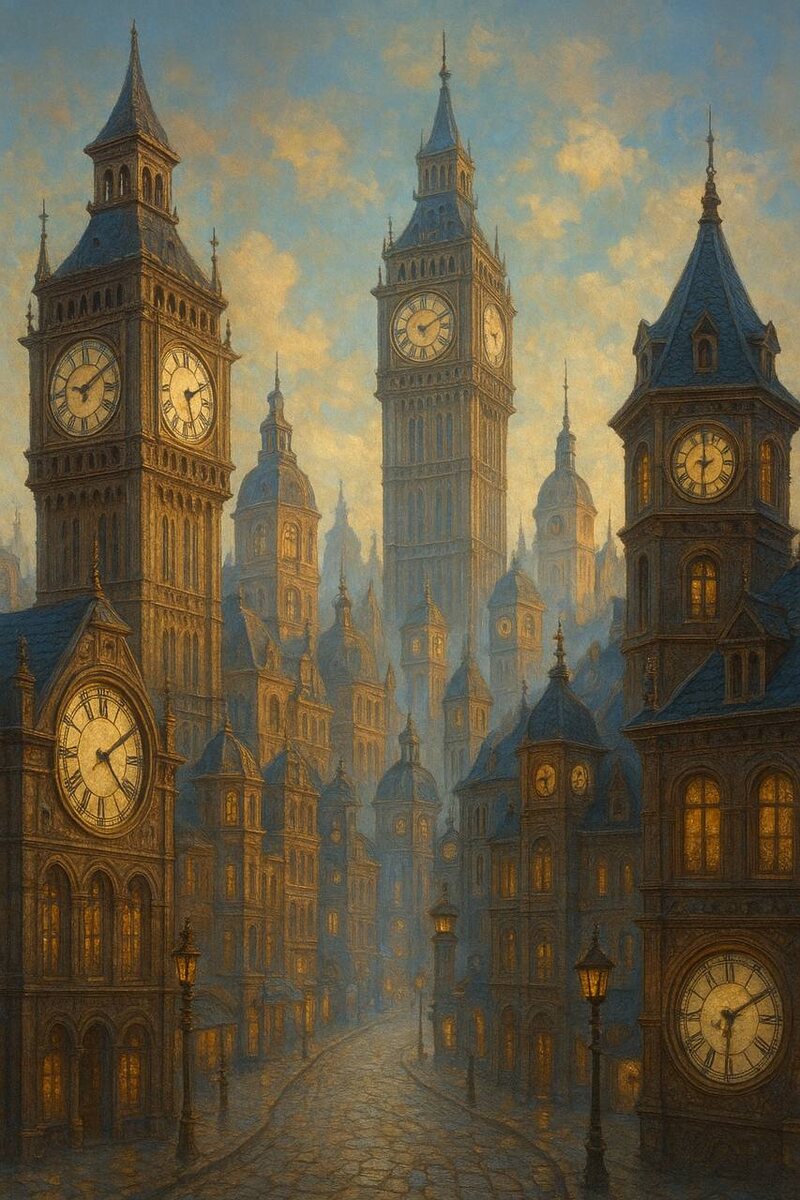 Сказка о Городе Разных Часов 🕰️ В одной волшебной долине стоял удивительный город. В нём не было мэра, законов или единого расписания. А всё потому, что каждый житель этого города жил по своим собственным часам. В высокой башне жил Господин Точность. Его часы тикали громко и чётко, как марш. Он вставал с первым лучом солнца, делал всё по расписанию и верил, что порядок — основа мира. Его дом сверкал чистотой, а дела были разложены по цветным папкам. У подножия башни, в доме, увитом плющом, жила Фея Импульс. У неё вообще не было часов. Она жила по зову сердца: могла ночь напролёт рисовать звёзды на стенах, а потом проспать всё утро. Её дом был наполнен полуоконченными стихами, необычными находками и внезапными чаепитиями в три часа ночи. Между ними, в уютной мастерской, жил Мастер Терпение. Его часы тикали медленно и мягко, как шелест листьев. Он выращивал бонсай, часами мог смотреть, как течёт река, и всегда знал, что всему своё время. Его движения были плавными, а слова — обдуман