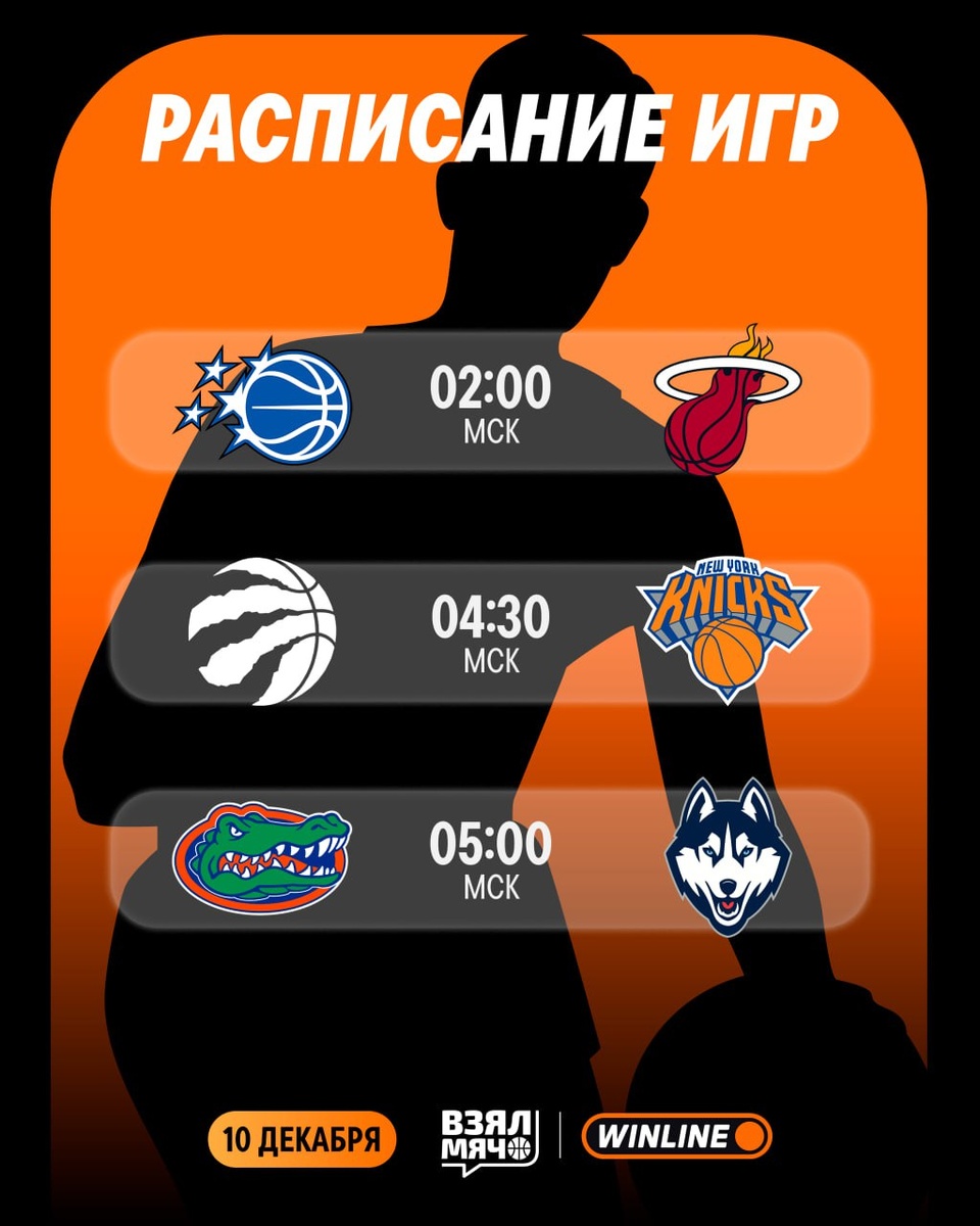 📺 Кубок возвращается! Расписание трансляций сегодняшней игровой ночи У нас в эфире четвертьфиналы и матч NCAA! Что будете смотреть? 02:00 | Орландо — Майами 🎙 Артём Тихонов 04:30 | Нью-Йорк — Торонто 🎙 Иван Латышев 05:00 | Флорида — Коннектикут 🎙 Дмитрий Хамидулин Прямые трансляции всех матчей смотрите в нашей группе ВК! 🏀 ПОДПИШИСЬ — ЗДЕСЬ ЖИВЁТ БАСКЕТБОЛ!