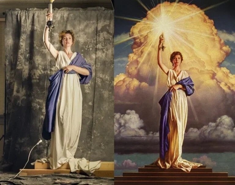 Вы все видели эту девушку, но почти никто не знает, кто она такая. Это не просто логотип компании Columbia Pictures, а настоящий исторический символ. В 1918 году, больше ста лет назад, американцы братья Кон и Джо Брандт основали киностудию с унылым названием CBC Film Sales Corporation — по первым буквам их фамилий. Очень быстро стало понятно, что название звучит не слишком красиво. Тогда Гэри Кон предложил взять один из главных американских символов — девушку Колумбию — и назвать студию Columbia Pictures. Колумбия названа в честь Христофора Колумба и символизирует открытие, свободу и прогресс. Сначала Колумбия на логотипе выглядела как женщина в римских доспехах с щитом и пшеничной ветвью. Но уже в 1928 году добавились развевающийся флаг и факел — чтобы всё выглядело максимально «круто» и по-американски. Позже лого ещё несколько раз обновляли, пока не пришли к нынешнему виду. В 1991 году студия заказала новый логотип художнику Майклу Диасу и фотографу Кэти Андерсон. Чтобы потрениров