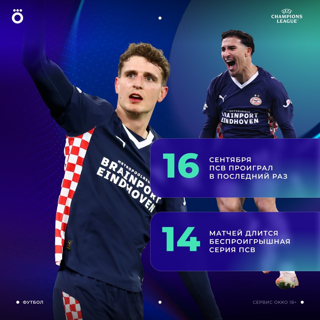 ⚽ Шикарная серия у ПСВ. Нидерландцы уже разгромили «Ливерпуль» и «Наполи» в Лиге чемпионов. Теперь на очереди «Атлетико». Делись прогнозом на матч в комментах 👇