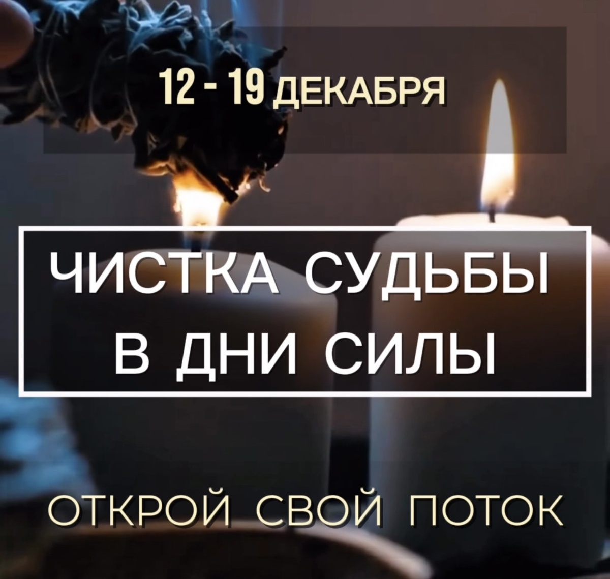 С 12/12 по 19/12 открывается период, в который обостряется твой скрытый негатив. Все, что ты подавляла годами: страх, боль, усталость, завистливые взгляды, чужие слова, проклятия рода, - всё это поднимается на поверхность именно в эти дни. И если ты не проведёшь чистку, оно войдёт с тобой в следующий год и продолжит тянуть вниз. Но есть решение. 8 дней мощных авторских энергетических чисток - простых по форме, но жёстких по действию. 🌀 После моей чистки: - уходит липкая тяжесть, хроническая усталость - разрываются старые магические узлы и чужие воздействия - уходит непонятная тревога - энергия поднимается, как после долгого сна - открывается поток изобилия и любви - ты сама становишься магнитом, на который притягивается всё, что тебе нужно. Это период перед зимним солнцестоянием - самый сильный порог года. Как войдёшь в него, так проживёшь весь следующий цикл. Если зайдёшь с грязью, то год будет тяжелым. Если зайдёшь очищенной, то тебя ждёт рост, деньги, внутренняя сила и ощущ