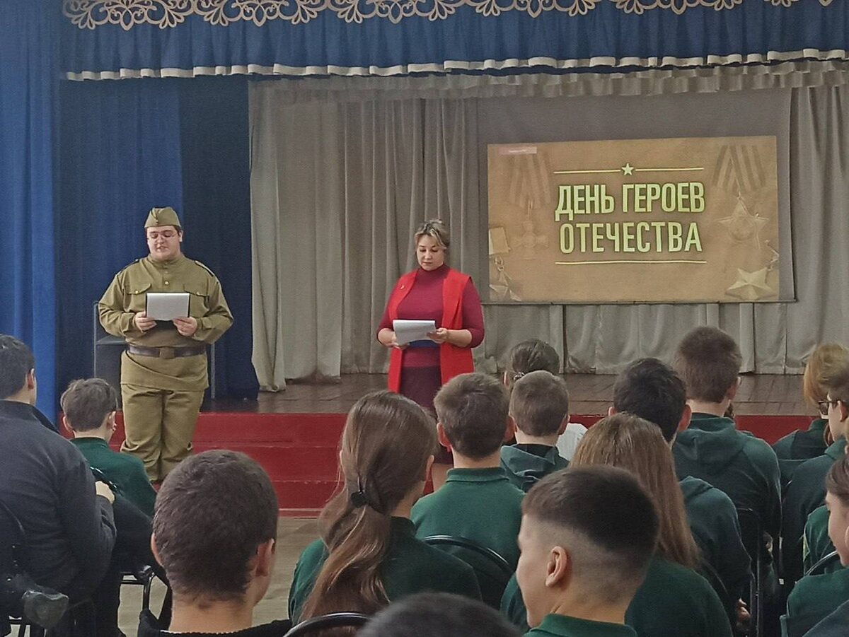 День Героев Отечества в России — памятная дата, которая отмечается в нашей стране ежегодно 9 декабря. В этот день чествуют Героев Советского Союза, Героев Российской Федерации, кавалеров ордена Святого Георгия и ордена Славы. Сегодня для учащихся состоялась героическая поверка «Мы этой памяти верны». В ходе мероприятия ребята посмотрели видеоролики об истории знаменательного события, о подвигах известных героев России и о героях настоящего времени. Также вспомнили земляков-героев, отдавших жизнь за свободу Родины в годы Великой Отечественной войны.