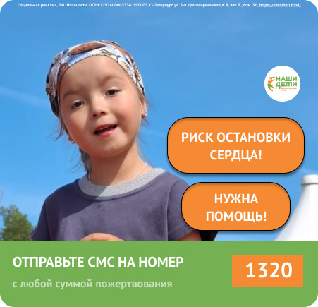 Этой крохе всего 4 года. И она перенесла за это время 7 операций, 5 из которых на открытом сердце. Но сейчас её сердечко может остановиться, а лёгкое – схлопнуться в любой момент. Помогите спасти малышку Владу! РИСК ОСТАНОВКИ СЕРДЦА! СПАСИТЕ! ПОМОЧЬ ВЛАДЕ ПО ССЫЛКЕ > Здравствуйте, дорогие помощники! Кажется, с самого рождения эта девочка могла быть лишена не только семейного счастья, родителей рядом с собой, но даже и самой жизни. Родившая её женщина отказалась от больной малышки в роддоме. Но удочерить Владочку решила семья Марии и Антона, у которых уже подрастал приёмный сын. Узнав о диагнозе ребёнка, они не отступились, а начали борьбу за её жизнь. И вот сейчас ей снова нужна помощь. Без этой помощи Владочку можно потерять в любую минуту. Артерия затромбировалась, и кислород не поступает в половину лёгкого. Риск остановки сердца может унести жизнь девочки в любую минуту! Ей нужна срочная операция на сердце! Помогите родителям Влады снова спасти любимую дочь! Диагноз: Риск остановки
