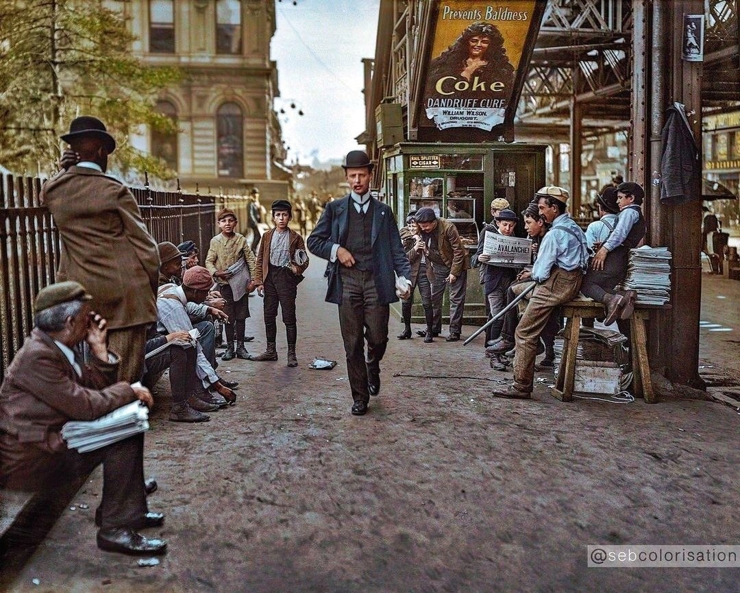 Нью-Йорк, 1903 год: Встреча прохожего и продавцов газет