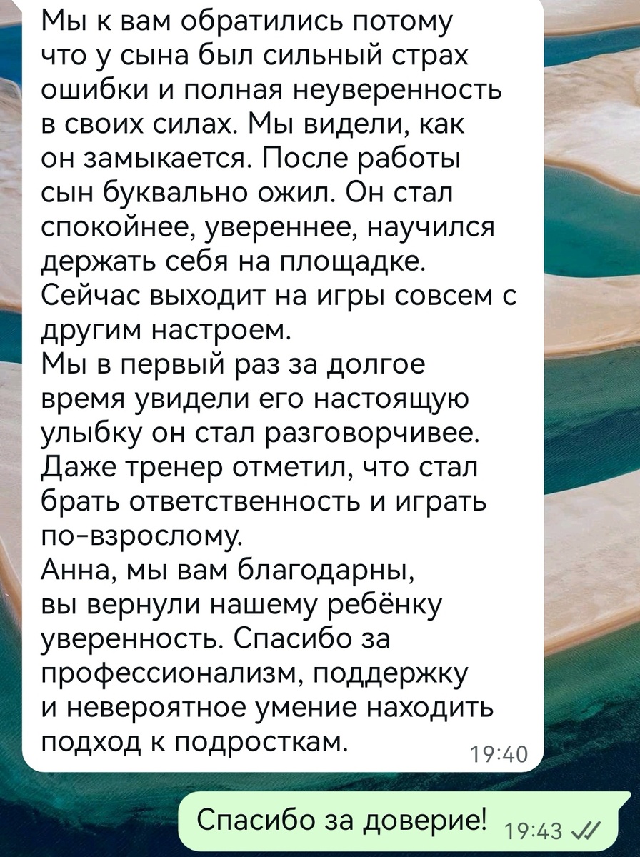 Хочу поделиться одной историей из моей практики. Парень 15 лет, баскетболист. С хорошей антропометрией. И при этом играл в “горячую картошку”, как сказали его родители. А его слова: - «Я получаю мяч, и в голове одно: быстрее отдать пока не ошибся, не потерял его, не накричали и как итог не заменили» И дальше стандартный сценарий, знакомый многим спортсменам, которые бояться ошибки: - потери мяча с первых минут, - суетливые действия, - не идти бросать в удобных ситуациях, - страх перед соперниками, что отберут мяч, - и всё больше времени проводить на скамейке. "Тренер начал разочаровываться, и в какой-то момент открыто сказал мне: - Я не понимаю, что с тобой случилось, ты был надёжным игроком. Сейчас ты боишься. На тебя нельзя положиться" Эти слова для парня были как приговор, они проникли в сознание очень глубоко, и он поверил этому. 🏀Где всё началось🏀 На диагностике выявили ситуацию, которую часто встречаю у юных спортсменов. Первая официальная игра. Полный зал. Роди