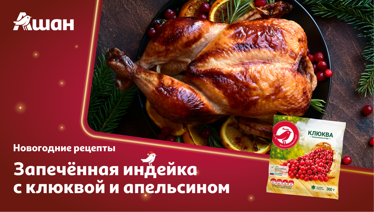 Вкусное и ароматное украшение для праздничного стола — сочная индейка в карамельно-клюквенной глазури. Гости и семья точно будут просить добавки! Количество порций: 6–8
