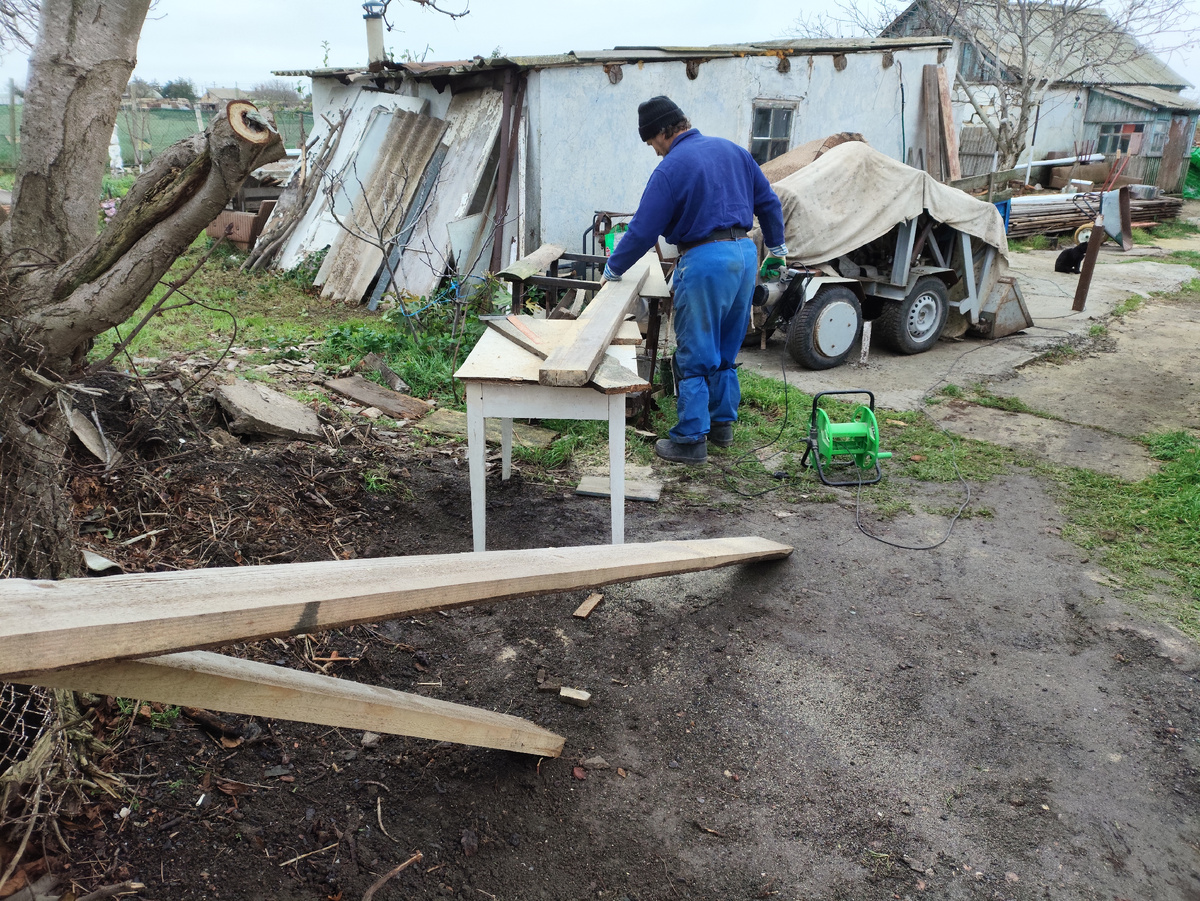 Чтобы сжечь лишние калории, пошла немного подвигаться. Смотрю, Олег уже что-то с досками мудрит. Достал циркулярку, что-то фигурно выпиливает. Ну и пусть, а я пойду своими делами заниматься.