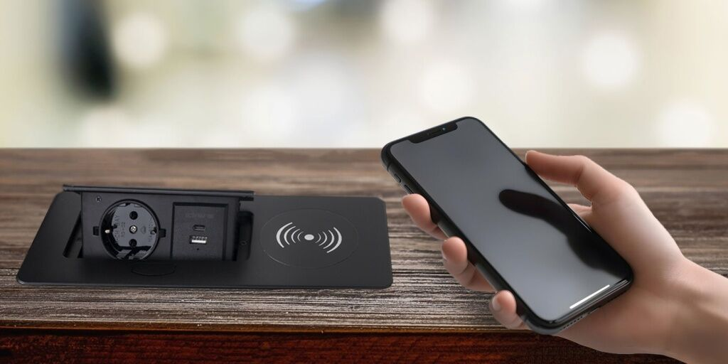 Легко выдвигается из поверхности стола одним движением, предоставляя доступ к розеткам с USB A+C и возможностью беспроводной зарядки. Кроме того, эта розетка имеет стильную крышку, которая сохраняет ее чистой от пыли и