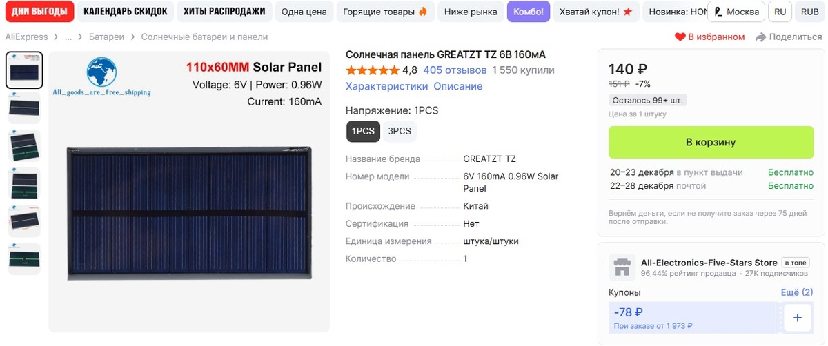 Для тестов кстати использую пары панелей 1,2 и 4,6.