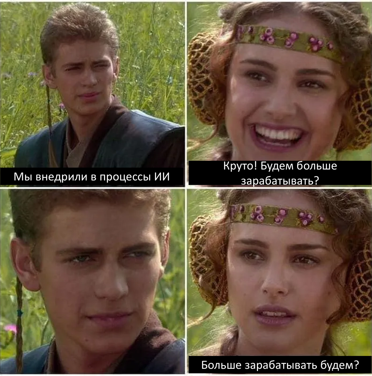 «Компании просто неправильно все применяют, мы им впихиваем этот ИИ, чтобы они наконец-то его сожрали, а они, сволочи, не хотят правильно его применять, используя chat GPT только для правки запятых в текстах и для других легких задач.»