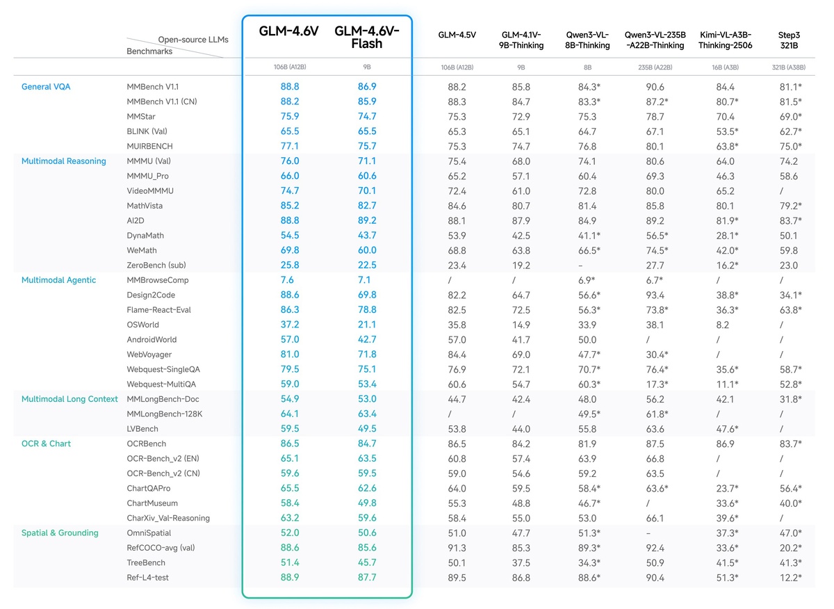 GLM-4.6V Команда Z.ai представила новую серию открытых мультимодальных lm 🔘GLM-4.6V (106B) - для облачных и высокопроизводительных сценариев 🔘GLM-4.6V-Flash (9B) - компактная версия для локального развертывания Впервые в мультимодальной модели интегрированы встроенные возможности Function Calling. Теперь: - Изображения, скриншоты и документы передаются напрямую как параметры инструментов без преобразования в текст - Модель визуально понимает результаты работы инструментов и использует их в дальнейших рассуждениях - Без потери информации при конвертации Создание rich-контента GLM-4.6V автоматически генерирует качественный структурированный контент с изображениями: - Понимает сложные документы с графиками, таблицами, формулами - Самостоятельно вызывает инструменты для обрезки ключевых визуалов - Проводит визуальный ауди" изображений на релевантность Визуальный веб-поиск End-to-end мультимодальный поиск: - Распознает намерения пользователя и автономно запускает нужные инструменты п