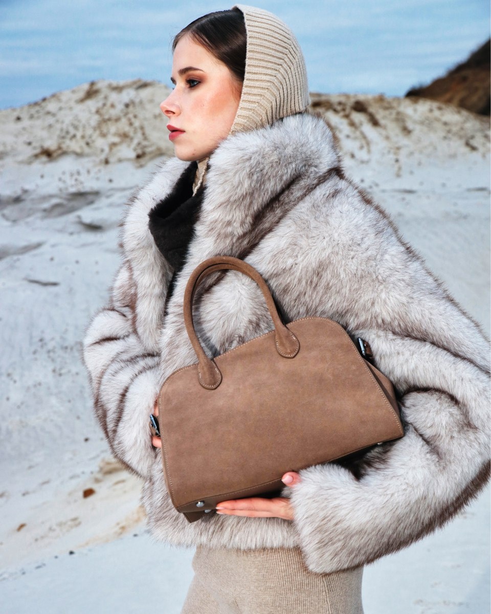 Есть аксессуары, которые тонко подчеркивают индивидуальность. Сумка-боулер LAUF! из натурального велюра в мягком песочном оттенке — именно такая. Её бархатистая фактура выглядит благородно, а округлая форма придаёт модели аккуратность и универсальность. Это та сумка, которая гармонично вписывается в ритм дня: от деловых задач до вечерних встреч. Откройте для себя эту сумку на сайте lauf.shoes.