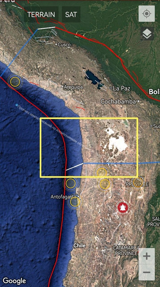 Южное и юго-западное обрамление плиты Альтиплано продолжает находиться в зоне риска сильного землетрясения М6-7+ ===== The southern and southwestern edges of the Altiplano plate continue to be at risk of M6-7+ earthquake.