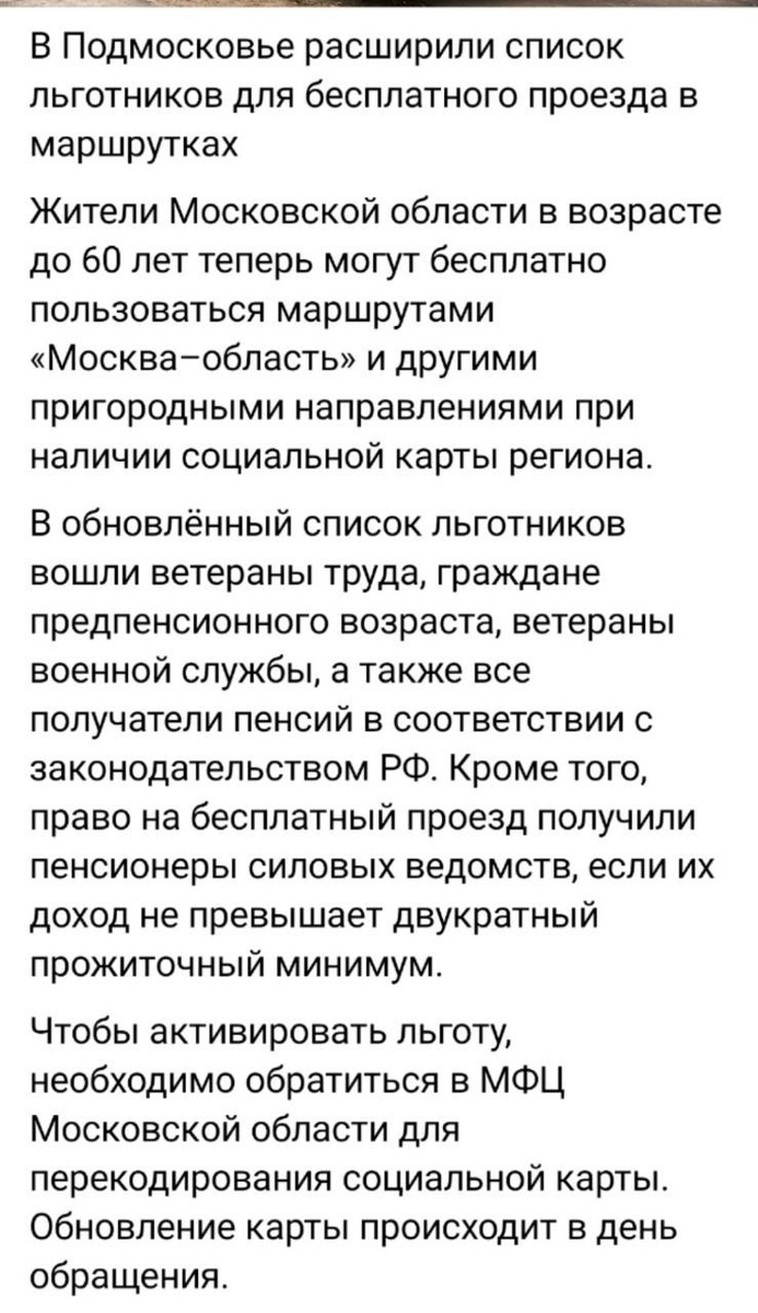 🆕Проезд в транспорте стал бесплатным для граждан предпенсионного возраста. Проезд в синих Московских автобусах стал бесплатным, нужно зайти в МФЦ (на Б.Бутовской), перекодировать карту без предварительной записи в 5 окошке. 🚀Подпишись на Telegram канал Дрожжино