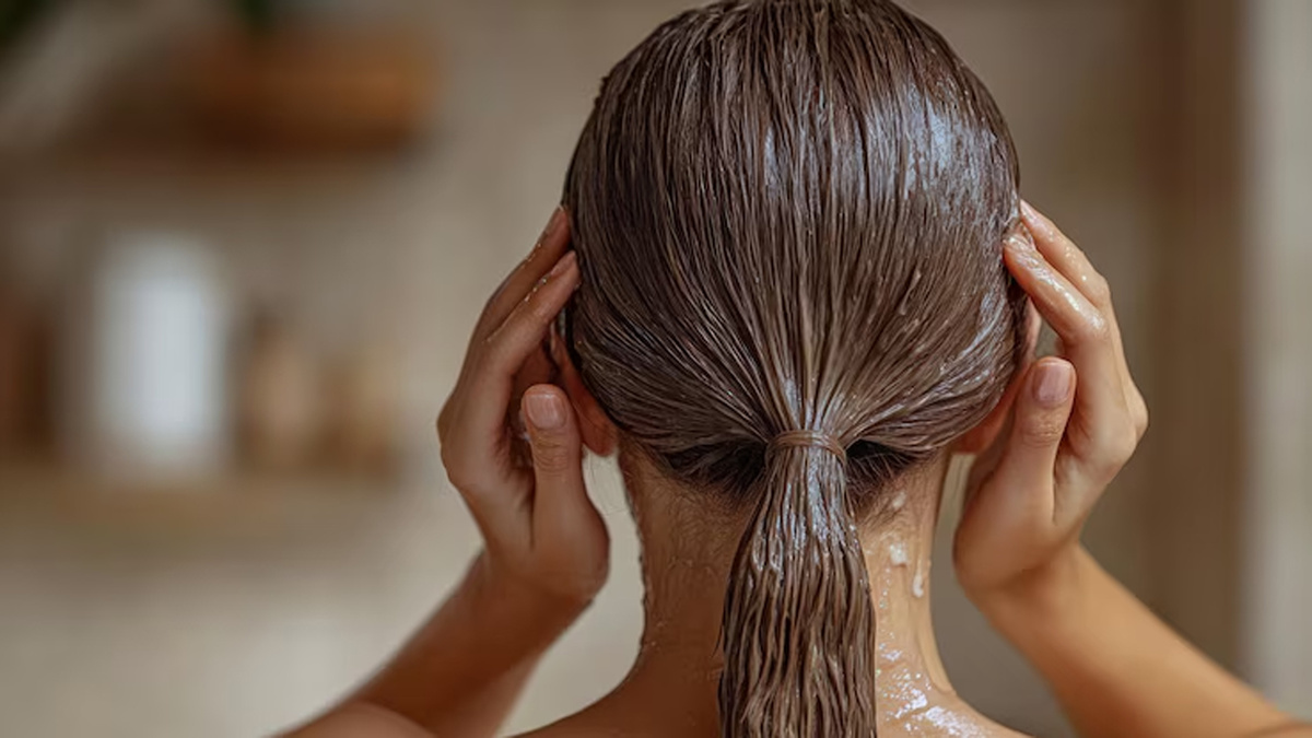 3.Нанесение. Щедро распределите выбранную маску или самодельную смесь по всей длине, особое внимание уделив кончикам. Помассируйте кожу головы.
