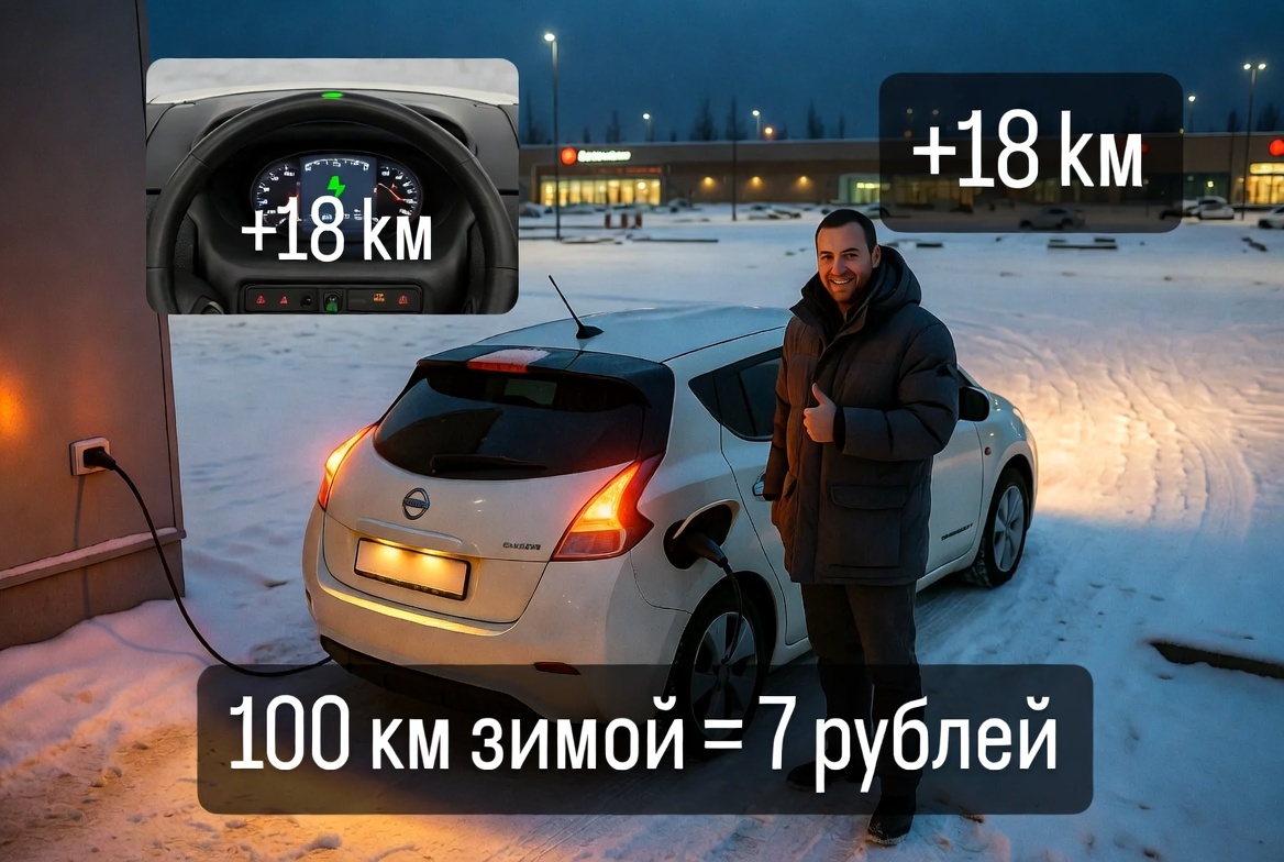 Я проехал всю зиму почти без затрат. Зарядка дома — пару раз в месяц. Остальное — на бесплатных розетках.