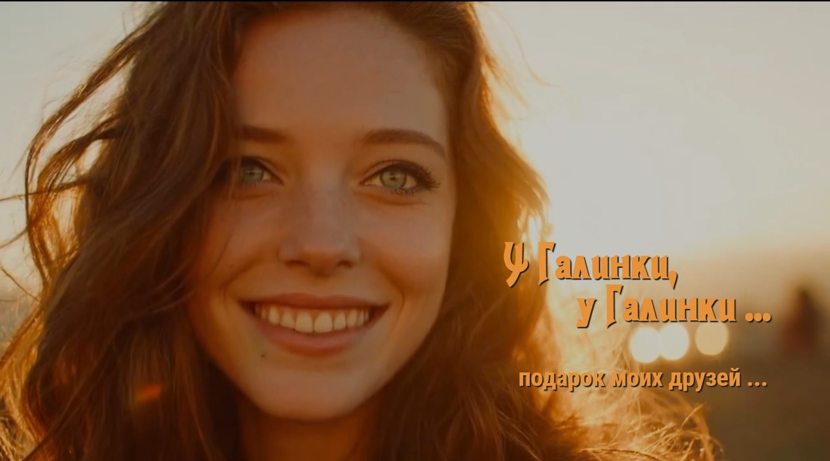 Добрый весм привет! Всем хорошего дня и настроения ... Желаю чтобы и у вас были такие друзья ... Так вот - мои друзья Ольга Полетаева и Владимир Макаров сделали для меня подарок ко дню рождения ... написали стихи и песню ... Вот сейчас я вам её и покажу... Огромное им спасибо, и моя благодарность ... Песня называется "У Галинки, у Галинки" .... У Галинки, у Галинки ... ( подарок совместный труд ) ***** Нынче праздник - День рожденья Поднимем Гале настроение. В костерок без промедления. Подбросим мы стихов поленья. ***** (Подбросим белые снежики) ***** Охапку позитива, горсти смеха Улыбок яркий, радости, успеха. Эротики волнительных грехов, Любовного романа огоньков. ***** (Для Галинки, для Галинки) ***** Позовём цыганский табор, Для стрептиза пять арабов. С ними в пляс она пойдет, От любви сума сойдёт. ***** (А Галинка - А Галинка.) ***** Оседает вдруг Пегаса, Рифм волшебных будет масса. Для друзей откроет клуб. Песней покарит Рутуб. ***** ( Для Галинки, для Галинки...) ***** Зап