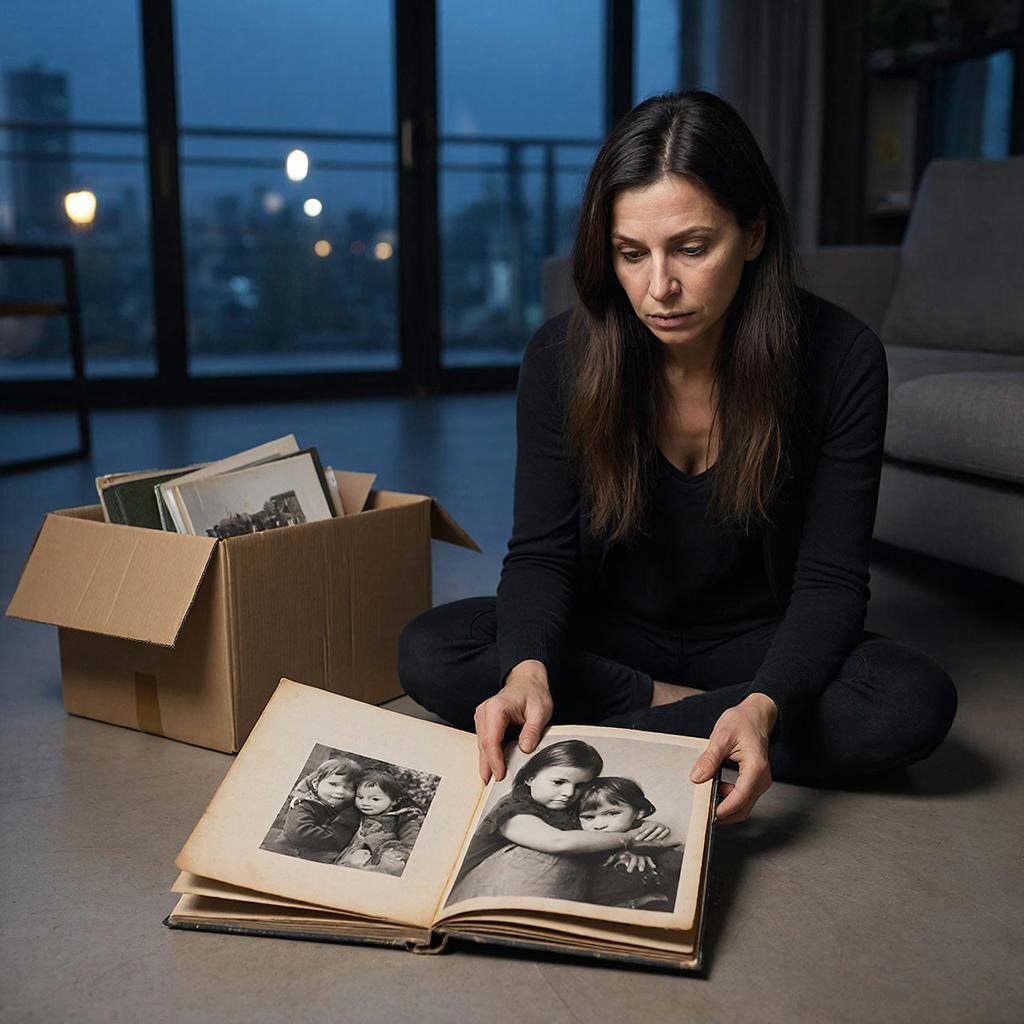 Марина положила трубку. Она подошла к шкафу и достала оттуда большую картонную коробку. Тот самый «хлам» — альбомы с фотографиями, которые ей «великодушно» оставили. Она села на пол, открыла первый. Вот они с Алёной маленькие, в одинаковых платьицах, держатся за руки. Вот подростками, корчат рожицы в фотоаппарат. Вот с мамой на даче, все загорелые, счастливые.