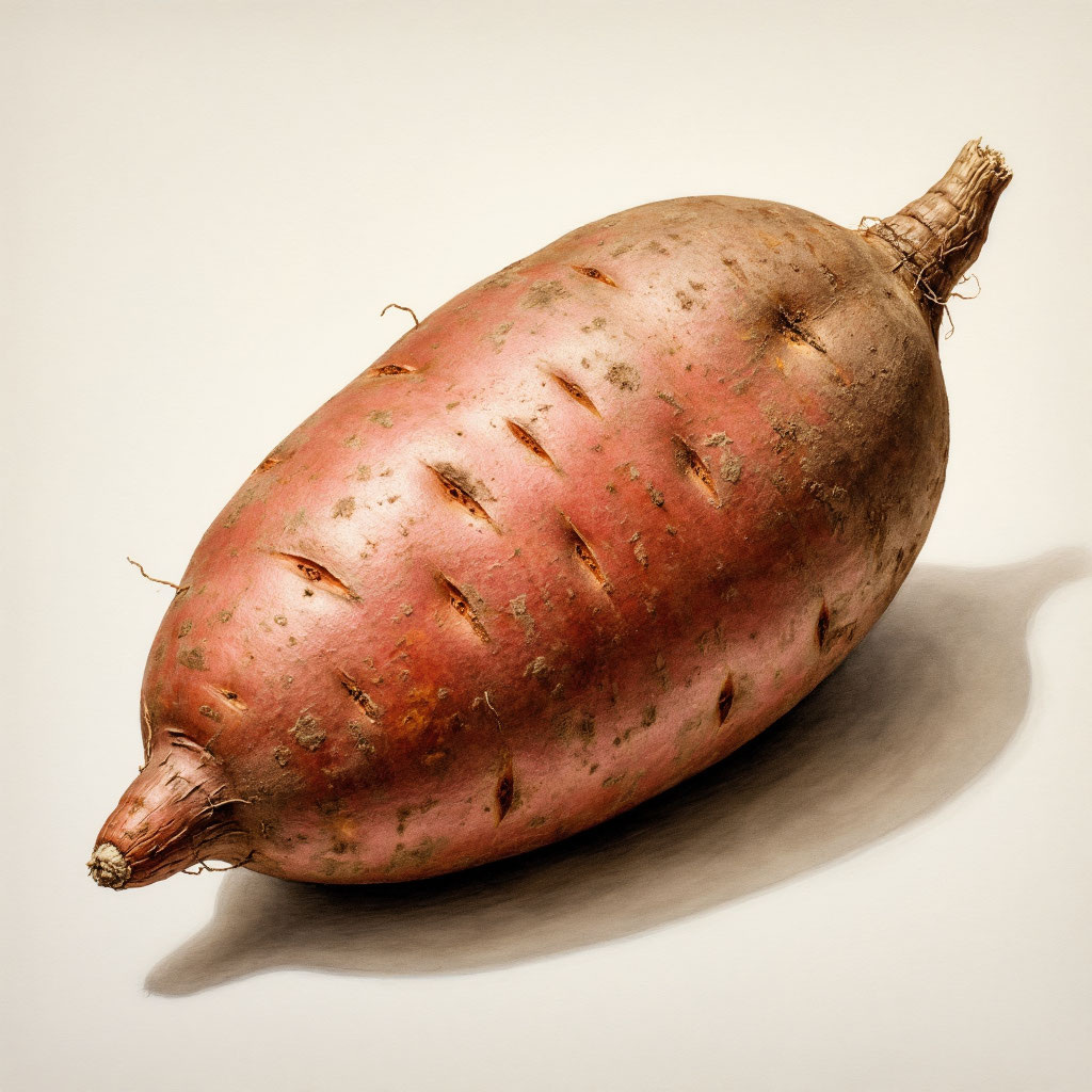 Дорогие, всех сердечно приветствую! Батат - это корнеплод, еще его называют «сладкий картофель». По внешнему виду этот овощ, действительно, похож на картошку. И по вкусу напоминает картофель, только сладкий, с привкусом тыквы или моркови, с ореховыми нотками. Родом батат из Америки (Мексики), где появился не менее 5000 лет назад. В Европу попал, примерно, в одно время с картофелем. На сегодняшний день выращивается в тропических и субтропических районах земного шара или в теплых областях умеренных зон. Основной мировой поставщик батата - Китай. Этот овощ из семейства вьюнковых, представляет собой многолетнюю травянистую лиану. Считается ценной пищевой и кормовой культурой. Помимо клубней, в пищу используются и молодые листья - их едят как зелень. Существуем множество сортов батата, они отличаются между собой. Сорта с белой или бледно-желтой мякотью - менее сладкие и влажные, чем с красной, розовой или оранжевой мякотью. В пищу батат употребляют в жареном, отварном, печеном и сыро