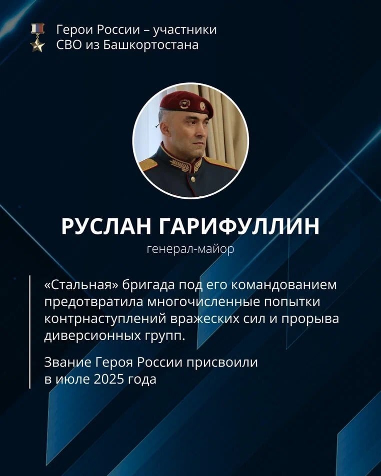 Их имена уже стали частью славной истории нашей большой страны. 14 воинов были удостоены звания Героя России за проявленные мужество и героизм в ходе специальной военной операции, восемь из них посмертно. Мы продолжаем рассказывать о Героях России из Башкортостана. В наших карточках дань уважения их подвигу. Помним и чтим! Источник https://uchaly102.ru/?p=115160