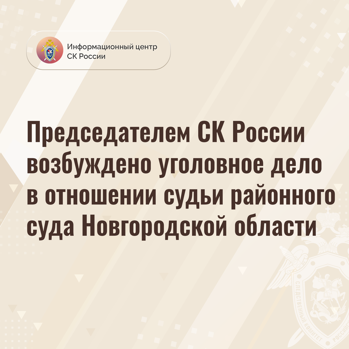 Председателем СК России возбуждено уголовное дело в отношении судьи районного суда Новгородской области