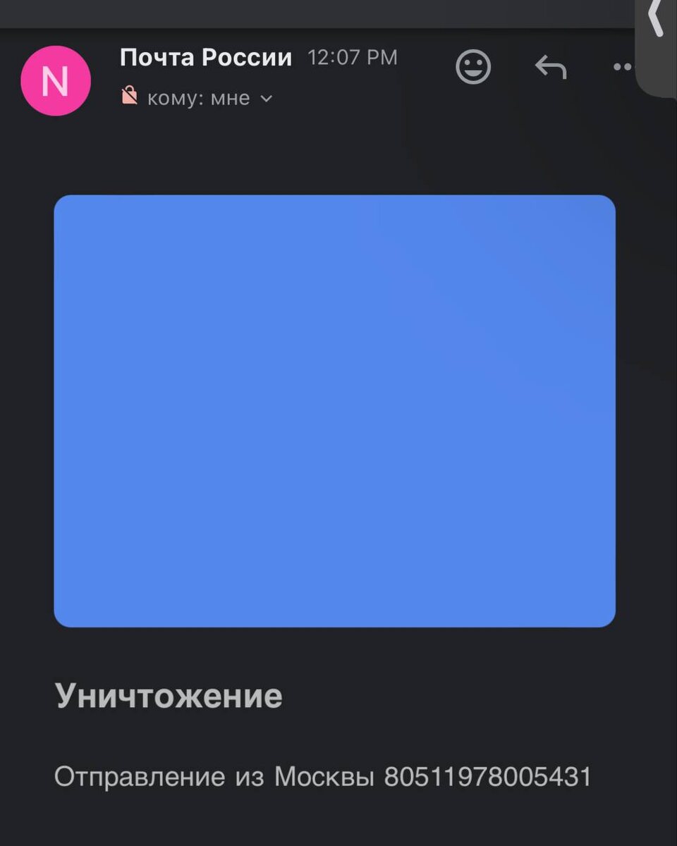 Это угроза? На самом деле я просто забыла забрать посылку, от которой отказался покупатель на авито, и спустя три месяца видимо меня предупреждают, что мой пиджак будет уничтожен. Интересно, теперь, как именно…… К слову, много я так вещей потеряла. Люди сердечно просят отправить именно почтой, которая у меня далеко от дома, а потом не забирают посылки 😭 Шуба из мутона, треники от Samb…. Все подверглось угичтожению, обидно. Как-то много возвратов авитовских в последнее время, не находите? Люди стали путать ресейл с маркетплейсами, или что?