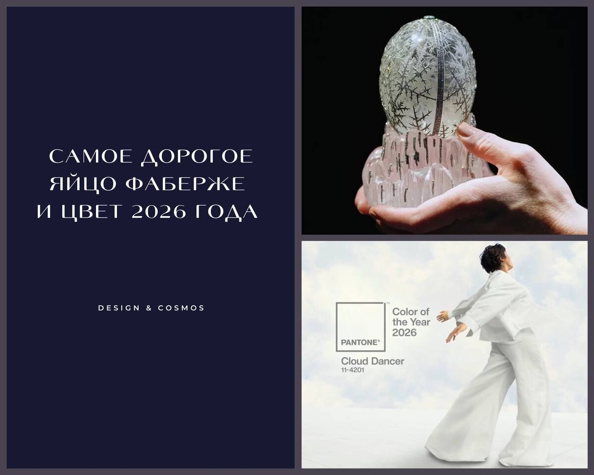 В Лондоне продали одно из самых знаменитых пасхальных яиц, Зимнее яйцо Фаберже, за рекордную сумму. 🔘 Его создала в 1913 году ювелир Альма Пиль для императорской семьи. Яйцо сделано из горного хрусталя, внутри выгравирован узор, похожий на иней, а снаружи оно покрыто платиновыми снежинками с бриллиантами. Итоговая цена — £22,9 млн, новый мировой рекорд для работ Фаберже. ➡️ Но самое интересное — его цвет. Оно не золотое, не цветное, а именно светлое, прозрачное, холодного оттенка, почти как первый иней на стекле. И кажется, это не совпадение. Pantone объявил цветом 2026 года «Cloud Dancer» — величественный белый, цвет зимней тишины, чистоты и ясности. Почти тот же тон, что и у яйца, созданного больше века назад. Получается красивая ассоциация: шедевр ювелирного искусства, установивший рекорд на аукционе, и главный цвет будущего года говорят на одном визуальном языке. А как вообще выбирают цвет года? Это делает не один человек, а закрытая команда экспертов Института цвета Pantone.