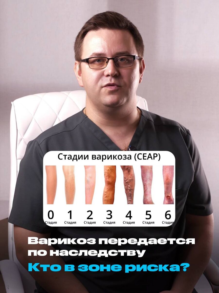 📎ВАРИКОЗ. Кто в зоне риска? Отвечает наш врач-флеболог, Здоров Алексей Владимирович: Варикоз - это не просто «усталость ног» или временный дискомфорт. Это заболевание, которое развивается постепенно, и одно из самых частых его оснований - наследственность ➡️Многие даже не подозревают, что варикоз может передаваться из поколения в поколение. Исследования показывают, что в 60–80% случаев у людей с варикозной болезнью есть родственники первой линии с такой же проблемой. Если варикоз был у одного из родителей, то риск повышается почти вдвое ➡️Причина проста: слабость венозной стенки и клапанная недостаточность, ведь это генетически обусловленные особенности, которые мы можем унаследовать так же, как цвет глаз или форму носа. Поэтому даже молодые, активные, стройные люди могут столкнуться с первыми признаками заболевания. ✅Но сегодня существуют современные малоинвазивные методы, которые позволяют избавиться от варикоза быстро, безопасно и практически без боли - без госпитализации, без