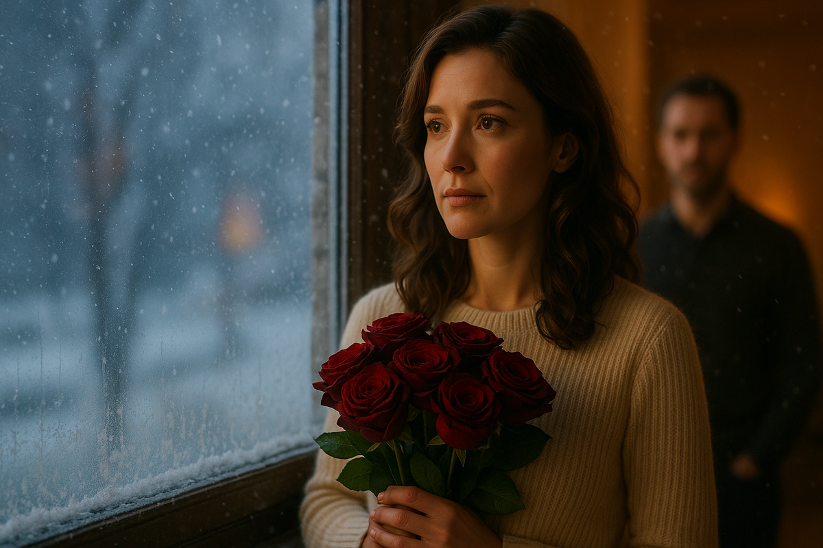 Но на пороге появился он один — с огромным букетом бордовых роз. Щёки горели от мороза, на воротнике пальто таял снег.