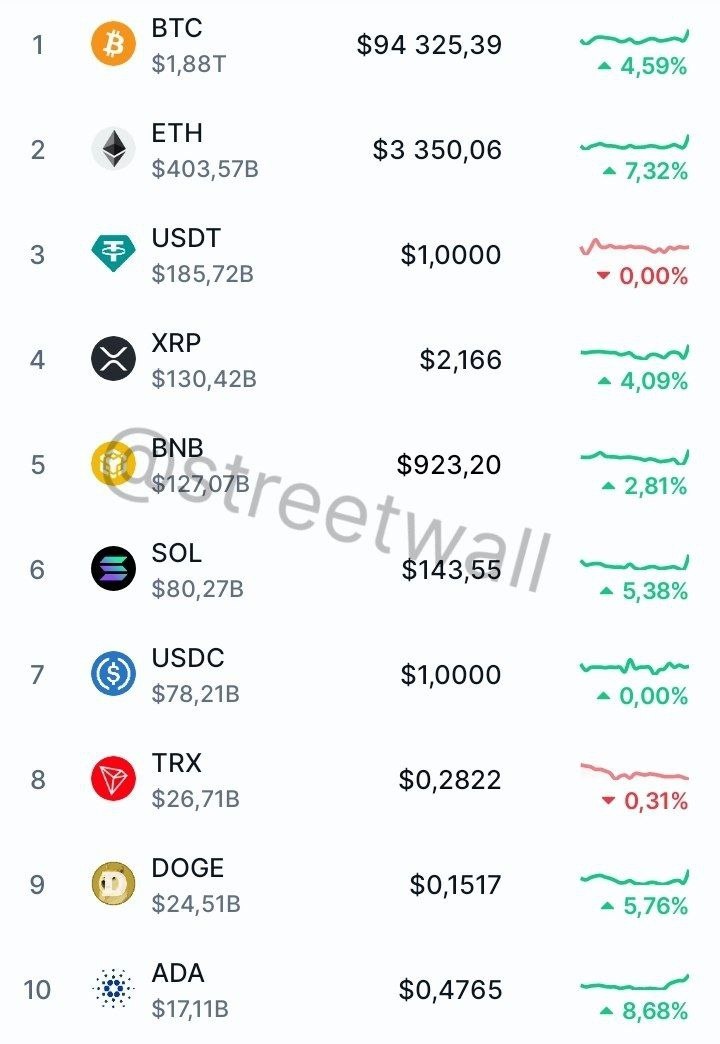 Биткоин поднимает всех: криптовалюта в росте. Криптовалюты продолжают расти, следуя за движениями биткоина, который задает тон всему рынку. ────────── ⚡️Важные новости – без лишнего шума!⚡️ Подпишись на канал и получай только суть: оперативно, чётко, по делу! 👉 ИнфоСплетник | @infospletnik