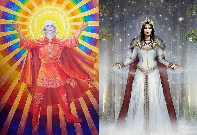 Как правило, славянские праздники сопровождаются весёлыми и широкими народными гуляниями, песнями, хороводами и разнообразными гаданиями, молодёжными посиделками и смотринами невест. Празднование дня Даждьбога и Марены приурочено к успокоению природы и наступлению зимних холодов. (Марена, Марана, Марина, Морена, Мармор (лат.), Моргана (брит.), Мэрроу (шотл.), Маря (латыш.), Морриган (ирл.), Марыся (белор.), Marica (италий.)) — Великая богиня матерь. Священное древо богини – Граб, Смородина. МАРЕНА (Мара) – Богиня Зимы, Ночи, Вечного Сна и Вечной Жизни. Очень часто ее называют Богиней Смерти, прекращающей земную жизнь человека в Явном Мире, но это не совсем верно. Богиня Марена не прекращает человеческую жизнь, а дает людям Расы Вечную Жизнь в Мире Слави.