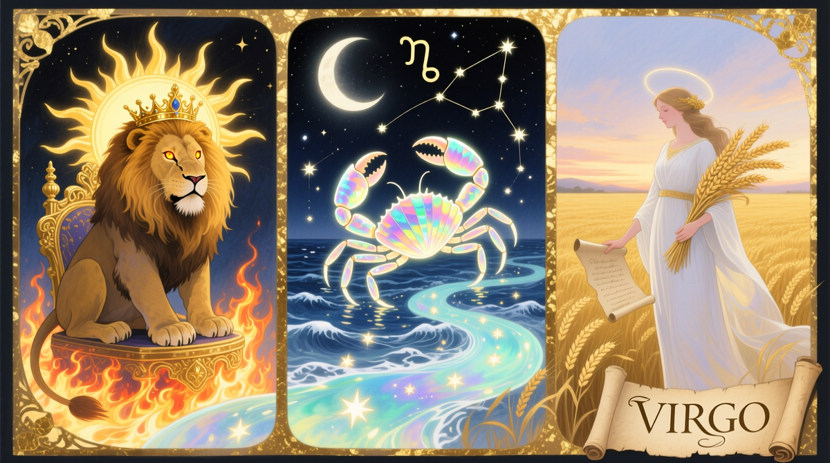 Сегодня мы погрузимся в глубины водного Рака, поднимемся к солнечному трону Льва и спустимся в упорядоченные поля Девы, чтобы понять магию этого летнего трио.