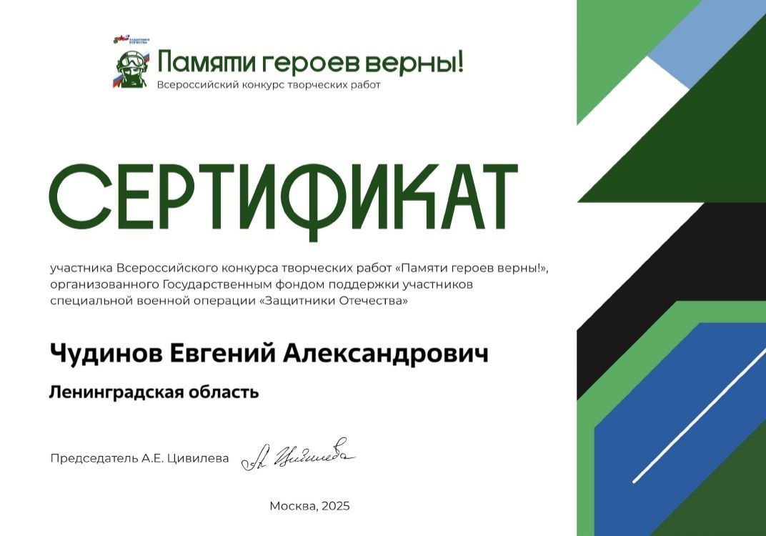 В уходящем году поучаствовал в конкурсе творческих работ «Памяти героев верны