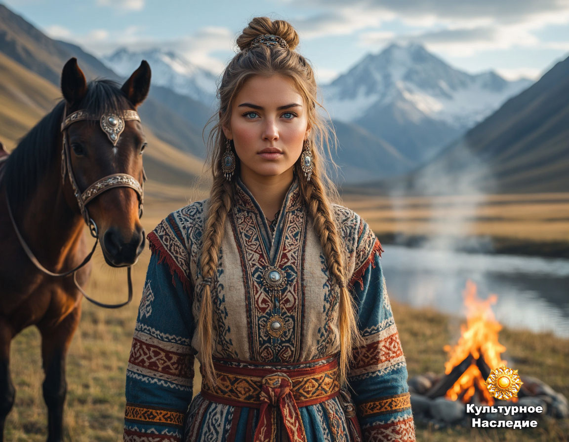 В алтайских эпосах встречаются героини с монголоидными чертами, но белой кожей и синими глазами. На первый взгляд — противоречие. Но антропология знает такие случаи: тысячелетнее смешение популяций на Алтае привело к сочетанию разных черт.