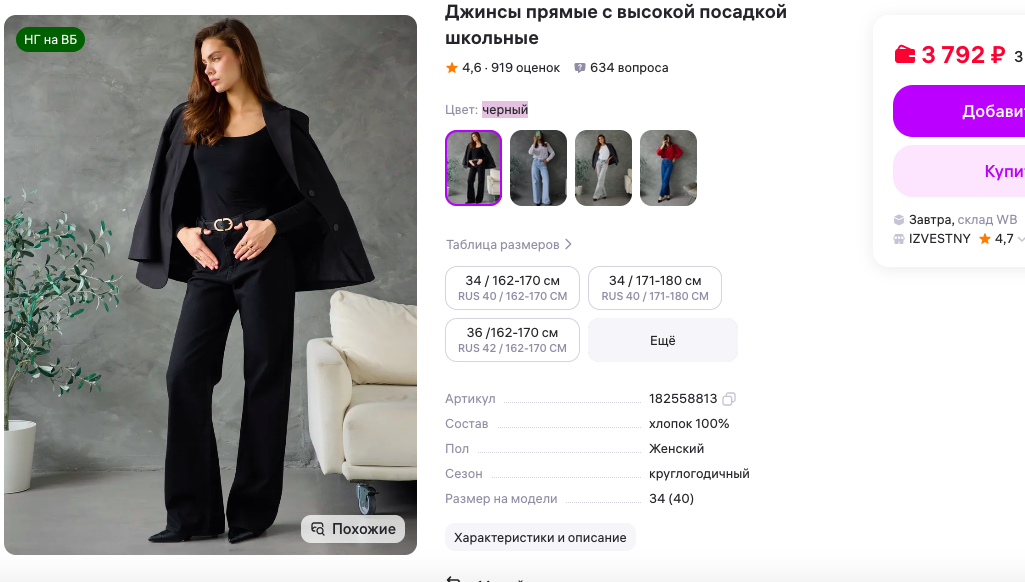 1. ШАГ 1: БАЗА. Выбираю низ (в 80% случаев это те самые черные джинсы, арт 182558813).