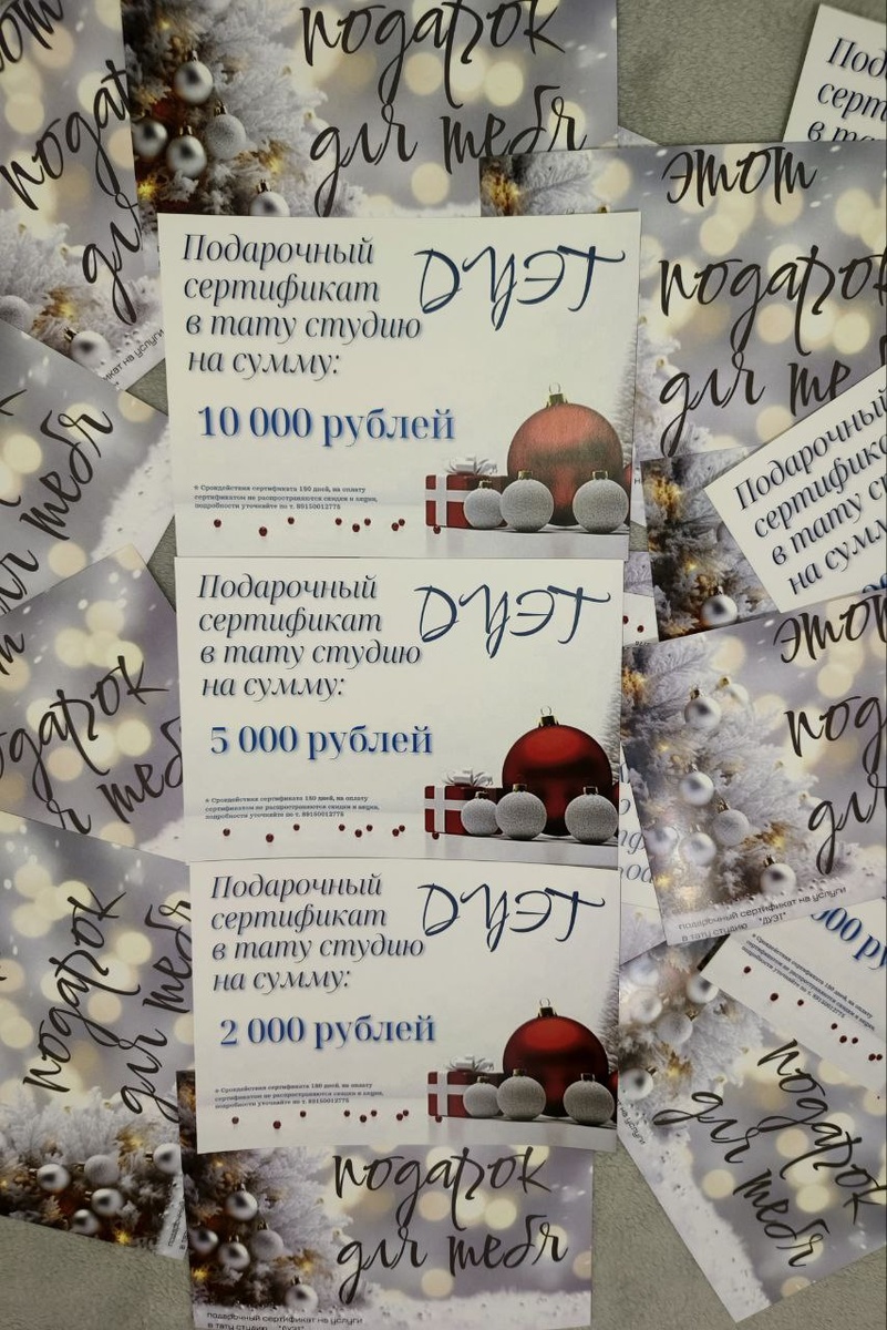 Подари искусство! Подарочные сертификаты от тату студии "ДУЭТ". На любую услугу студии. Делитесь ссылкой. Друзья ! В этом посте есть большое видео, которое не загрузилось в Дзен. Откройте оригинал поста в телеграме, чтобы его посмотреть