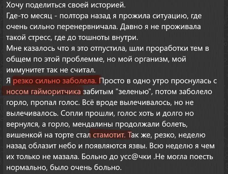 Хотите себе иммунитет, о который вирусы сломают зубы?🦠 Знаю что хотите😉. Тем более что на дворе сезон простуд, когда грипп, ковид и прочие ОРЗ особенно коварны. И вот тут нам всем нужен мощный защитник - иммунитет, который не пустит недруга в организм🛡. Многие сознательные люди всерьёз занимаются своим здоровьем: правильно питаются, имеют здоровые привычки, занимаются спортом, пьют витамины, отводят достаточно времени для сна и тд. И все это, безусловно, важно и нужно, чтобы иметь хороший иммунитет, но, увы, далеко не всегда достаточно🤷🏻♀️. Потому что главный противник нашего внутреннего защитника - это гормон стресс кортизол, который уничтожает ❌ иммунные клетки. И делает он это разными способами: 🤒 Возможно, в своём прошлом вы пережили очень сильный стресс, который нанёс непоправимый урон вашему иммунитету, и теперь он стал как раненый солдат, который никак не может восстановиться и обеспечить вам высокий уровень защиты. 😷 А может быть, вы каждый день пребываете в фонов