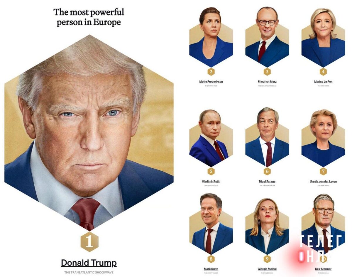 Кто в Европе главный? Издание Politico опубликовало свой рейтинг политиков. На первом месте совсем неевропейский Трамп, далее следуют премьер Дании, канцлер Германии и главная оппозиционерка Франции. Лидер расположенной и в Европе, и в Азии России занимает пятую строчку по влиятельности. Просрочка из Киева в этом году попала в рейтинг на 14 место с подписью «шут джокер в колоде», а Макрон оказался еще ниже — на 19 месте. Что-то «коалиция желающих» не выглядит авторитетно даже для европейских СМИ. 🚲 Подпишись на Телега Online
