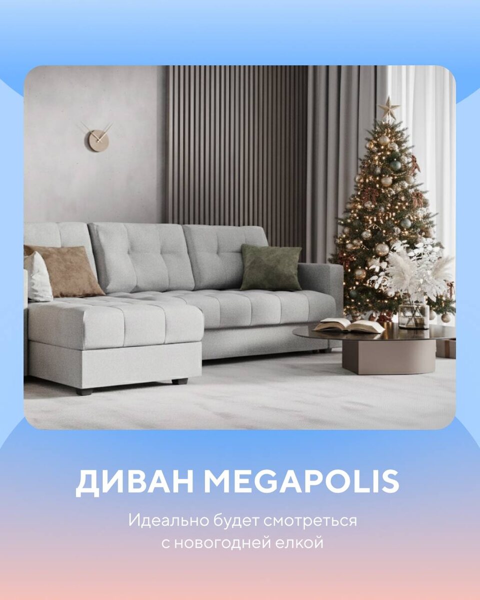 🎄 Под Новый год так хочется добавить особого уюта в своё жилище! Представляем вам амбассадора уюта и дружеских посиделок — диван Megapolis! 🔹 Угловую секцию или оттоманку можно установить как справа, так и слева, в зависимости от ваших предпочтений. 🔹 Модель оснащена вместительным бельевым коробом. 🔹 Задняя спинка дивана защищает от прикосновения со стеной, предотвращая возможные повреждения и загрязнения. 🔹 Диван легко раскладывается, превращаясь в комфортное спальное место. 🔹 Доступно 92 варианта исполнения дизайна дивана. Теперь остается лишь добавить новогодние украшения, мягкий плед и праздничные наволочки на подушки, чтобы создать волшебную атмосферу и настроение праздника 👐🏻 Выбирая Сонум, вы приобретаете не только особый уют, но и функциональность с качеством 💙 clck.ru/3QkhdC