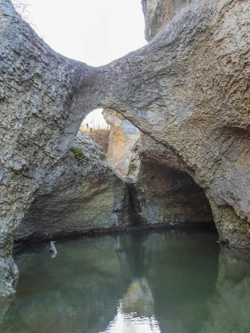 Удивительное - рядом 🪨Такой рельеф обнажился на Хаджохской теснине во время засухи. Уровень реки упал и открыл замысловатые фигурные скалы. 💦 Поток воды за тысячи лет здесь выточил настоящий каменный лабиринт с арками, сводами и колоннами. 📷 lagonakitravel Юг Край