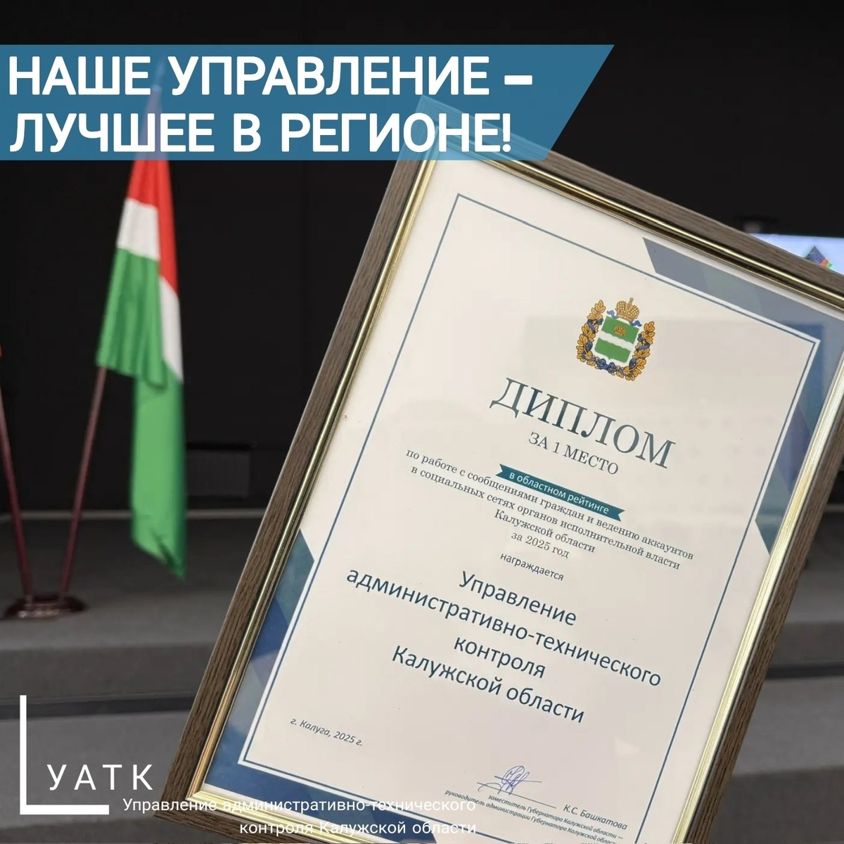 🏆 ПЕРВЫЕ! Наше управление — лучшее в регионе по работе с обращениями граждан и в соцсетях! Сегодня в Калужском народном доме прошёл областной форум «Фестиваль госпабликов». В ходе мероприятия участники обсудили лучшие практики, поделились опытом и определили тренды на 2026 год. 📈И мы — на вершине рейтинга! Наше управление административно-технического контроля Калужской области заняло 1 МЕСТО среди органов исполнительной власти по работе с обращениями граждан и ведению соцсетей. 👍Мы не останавливаемся на достигнутом! Впереди — новые цели и задачи. Подробнее ВКонтакте #Тема_дня_Фестиваль_госпабликов_2025