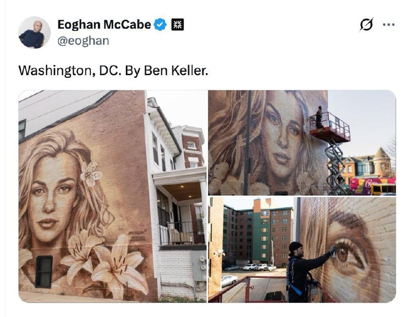 Mural honoring Iryna Zarutska painted in Washington, DC Intercom CEO Eoghan McCabe offered $500,000 to paint murals across the country to honor the Ukrainian refugee who was murdered on the Charlotte light rail Elon Musk pledged another $1 million for the project