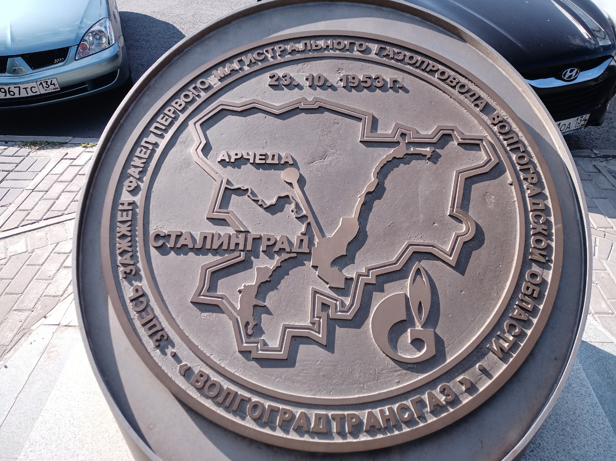 Памятник не поражает размерами и вообще не особо известен, хотя и находится в центре Волгограда напротив центрального рынка. Это очень оживлённое место, тут всегда многолюдно, что в выходные, что в будние дни мимо памятника проходит и проезжает уйма народу. Мало кто останавливается у памятника, а ведь наверное зря. Как я уже сказал, мы привыкли к тому, что пищу готовим на газовой плите и отапливаем свои дома газовыми котлами. Это норма нашей жизни, обычное благо цивилизации. И нам кажется, что так было всегда. Но нет, были времена, когда газа в наших домах не было. Я даже застал время, когда дом моего прадеда в Краснослободске не был газифицирован и отапливался печкой. И если бы в 1953 году не был построен газопровод из Арчеды, это благо цивилизации пришло бы в нашу жизнь гораздо позже.