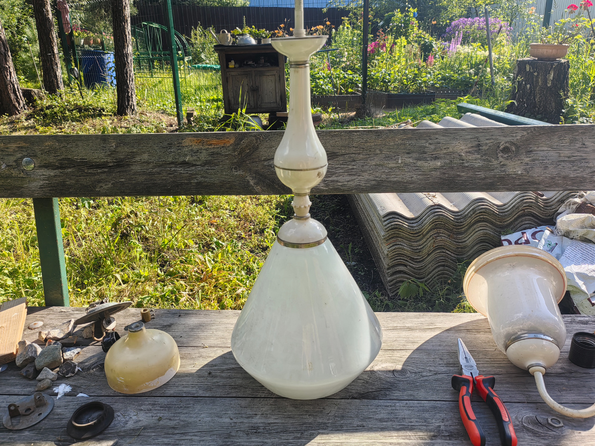 Вот так всегда. Всё, что не имеет железной ценности и нельзя забить/закрутить почему-то у него приговаривается к помойке. В сарае при разборке нашлось два абажура – свидетеля лучшей жизни.