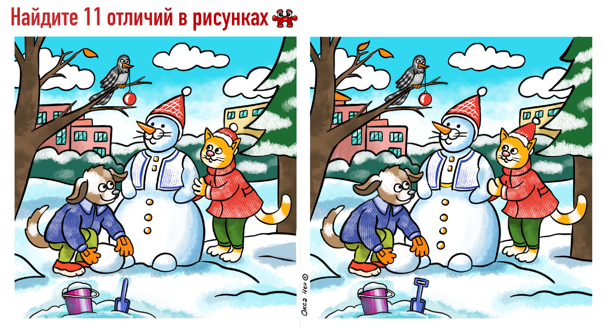 11 отличий между двумя картинками про снеговика. Увлекательная задачка на внимательность для всей семьи
