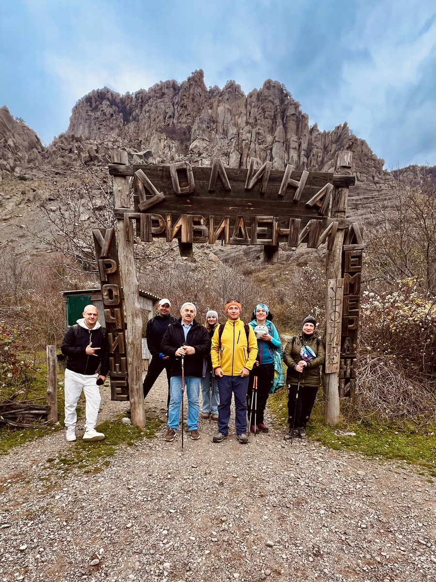 Приехали к подножью горы Демержди в село Лучистое, пошли ко входу.